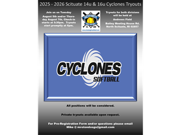 Tryouts for 2025 - 2026 Cyclones Travel Softball